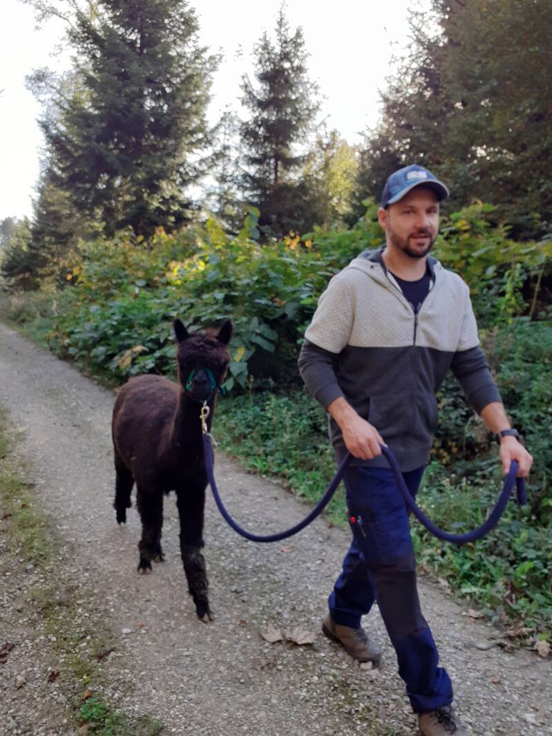 Es kann auch sein, dass zwischendurch wir die Alpakas übernehmen, je nachdem wie es die Situation erfordert. Die Sicherheit von Mensch und Tier steht immer an erster Stelle. Es macht aber auch Spass mal einfach gemütlich nebenher zu gehen.