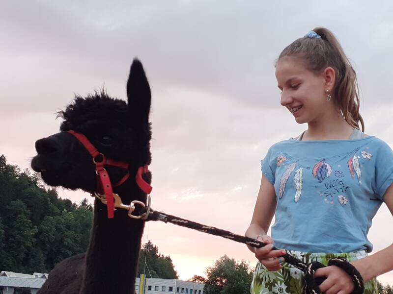 Kinder dürfen ca. ab 10 Jahren ein Alpaka führen
