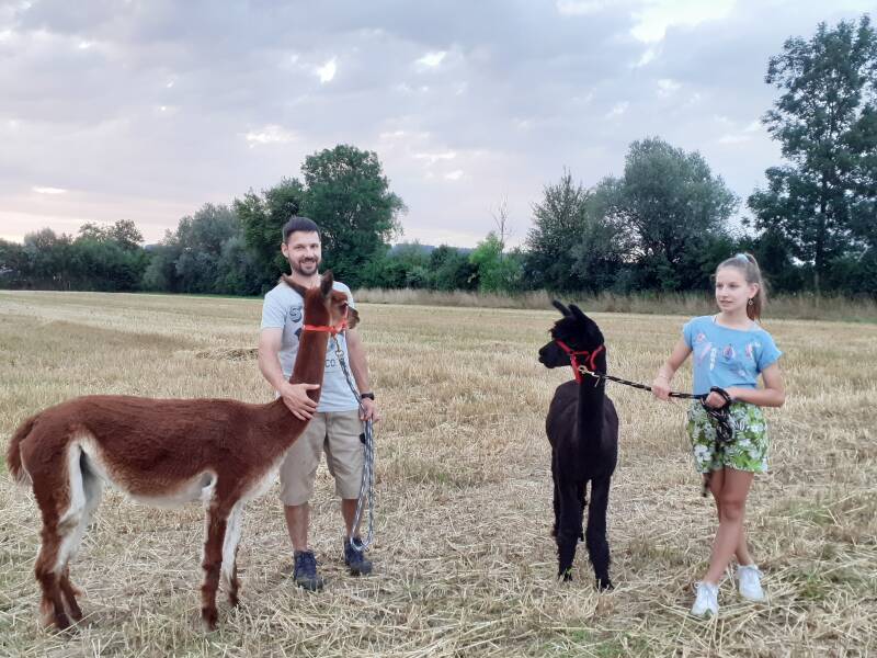 Kinder dürfen etwa ab 10 Jahren selber ein Alpaka führen, immer mit Hilfe von uns, soweit es gebraucht wird. Wir helfen natürlich auch bei den Erwachsenen, wo nötig :)