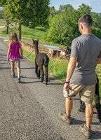 Wir bieten mit unseren Alpakas geführte Spaziergänge an. Gerne dürfen Sie sich bei uns melden, um einen Termin zu vereinbaren.
