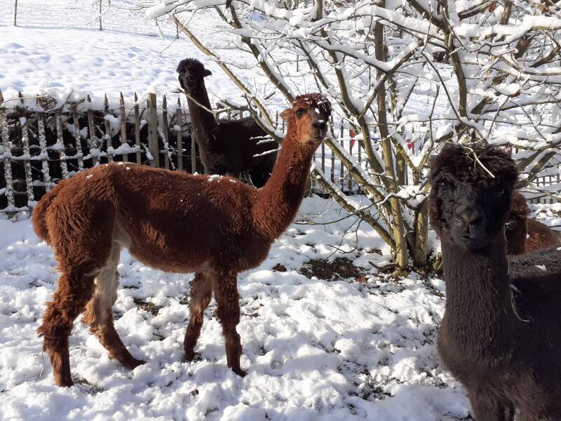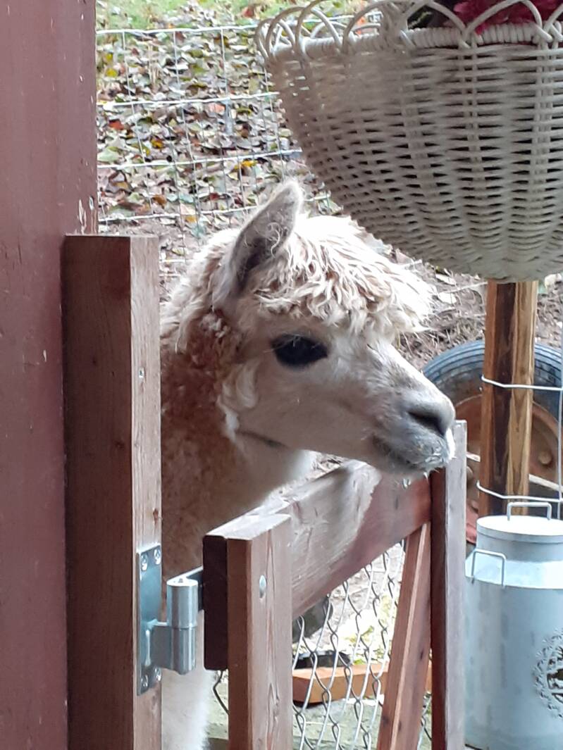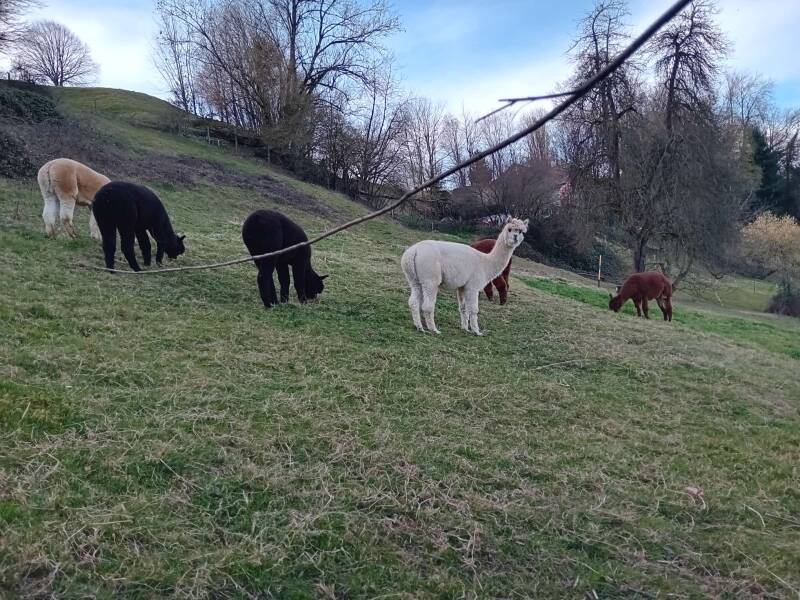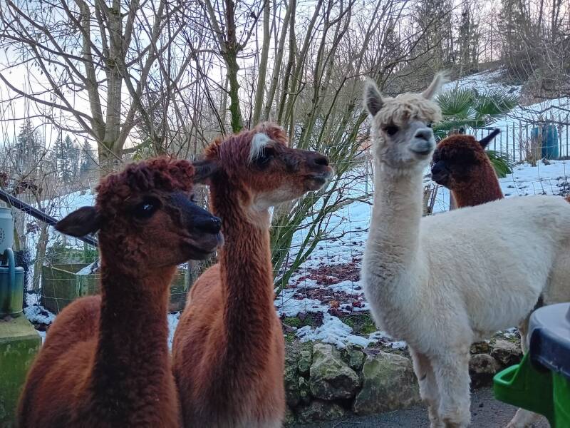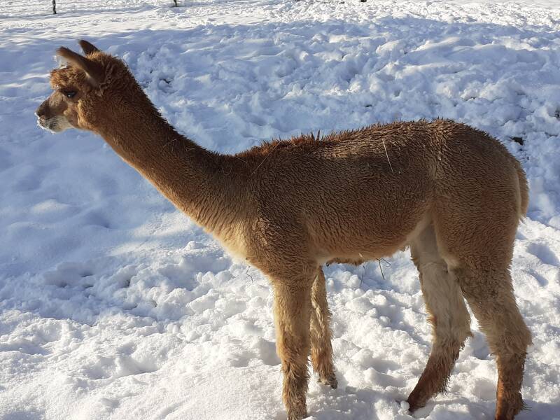 Solay haben wir im November 2023 in einem Inserat entdeckt, und uns sofort in die Schönheit verliebt. Die helle Farbe ihres Vliesses und die kugelrunden schwarzen Augen haben es uns sofort angetan. Da auch sie aus einem Tuberkulose überwachten Betrieb kommt, stand nach einem ersten Besichtigen nichts mehr im Weg, dass sie bei uns einziehen durfte. Willkommen wunderschöne Solay in unserer Alpaka-Herde.